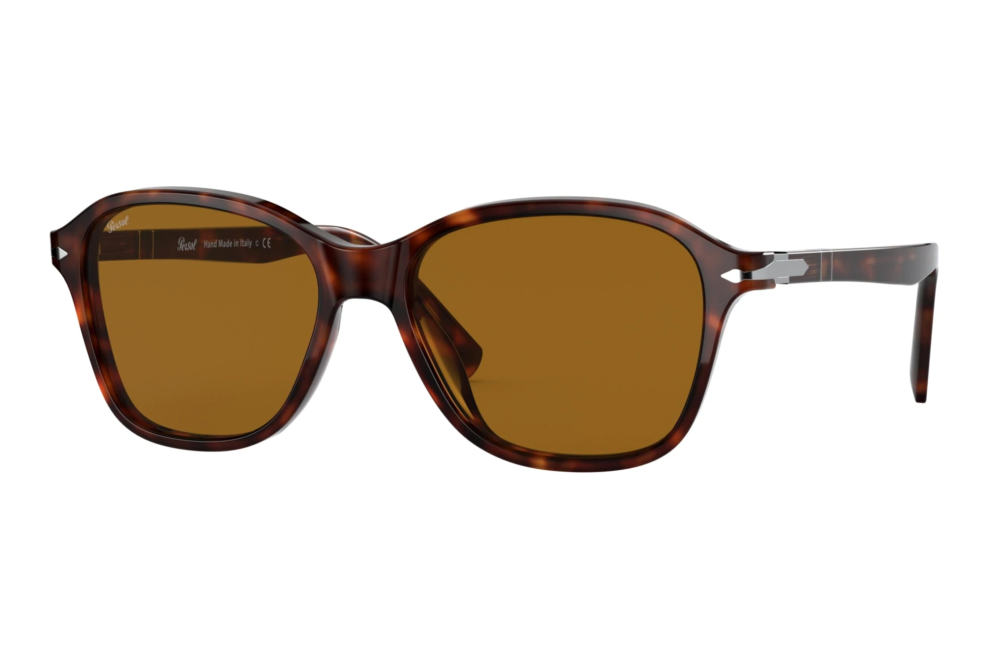 Denne model fra Persol er en all-rounder og passer både til kvinder og til mænd. Briller er in. Særligt populære er briller med fuldt indfattede glas, fordi du får mest brillefor dine penge. Det er ikke kun når det kommer til modstandskraft, men også nårmaterialets og designets synlighed er vigtigt. Den kvadratiske form giver runde ansigter et mere markant udtryk. Formen sætter digog dit udseende i fokus. Plast er et meget let og fleksibelt materiale. Dette giver en lang levetid og en høj gradaf komfort. For dem, hvor sort er for stor en kontrast, er brun det perfekte alternativ. Brun erflatterende for ansigtet og virker diskret. Udover grå, er brune glas dem som forvrænger synsindtrykket mindst. Med alle andrefarver tager det længere tid for øjet, at neutralisere farveindtryk. Funktionelt er du selvfølgelig også på den sikre side. Med 100% UV-beskyttelse afdine øjne, kan solen bare komme an.