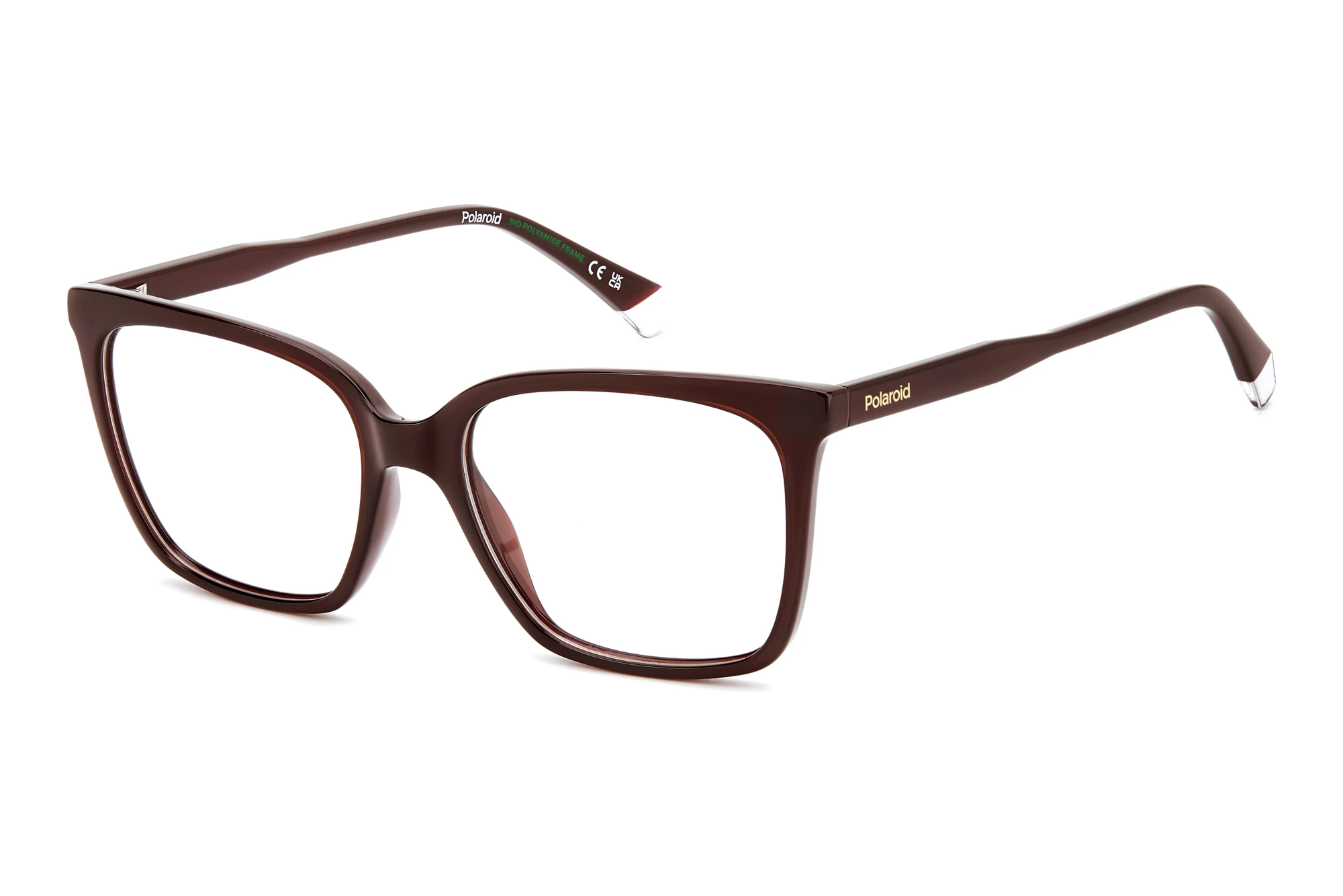 Brillestellet er særligt designet til powerkvinder. Yndefuldt design og et stærkt udtryk kombineres til klassisk chic. Stellet er en del af formen når det kommer til den modificerede rektangel brille, som er kendetegnet ved, at sidekanterne er afrundede. Plast stel, som disse, kombinerer holdbarhed med komfort. PLD D588 sidder meget behageligt på både næsen og ørerne.
