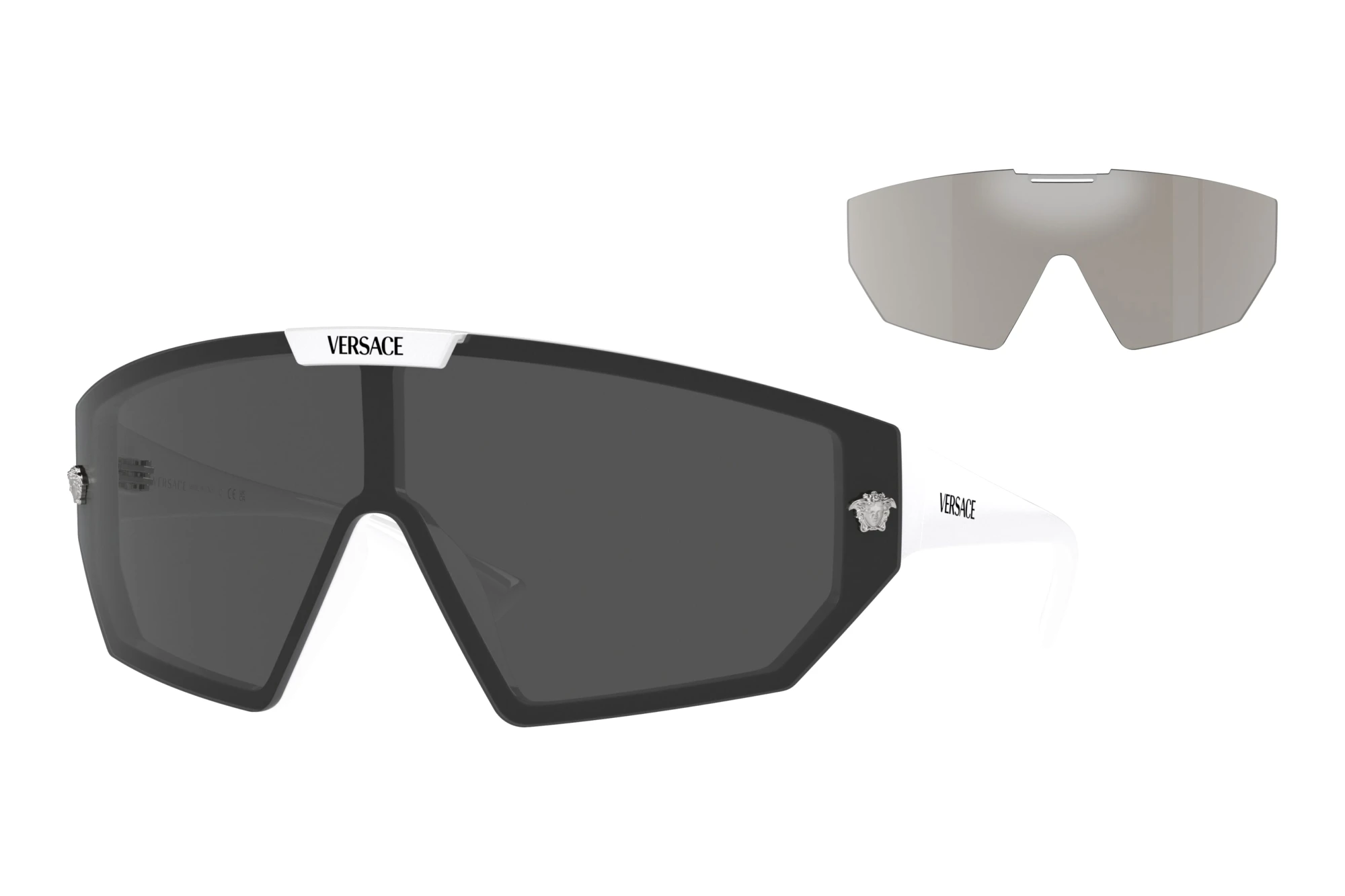 Unisex modellen fra Versace skelner ikke mellem til mænd og kvinder. Briller er in. Særligt populære er briller med fuldt indfattede glas, fordi du får mest brillefor dine penge. Det er ikke kun når det kommer til modstandskraft, men også nårmaterialets og designets synlighed er vigtigt. Mono looket er både sporty og elegant. Gennem det ene glas er det ikke kun synsfeltet der bliver maksimeret, men brillerne bliver også et ægte blikfang. Mono modeller er dog ikke til at få med styrke. Funktionelt er du selvfølgelig også på den sikre side. Med 100% UV-beskyttelse afdine øjne, kan solen bare komme an.